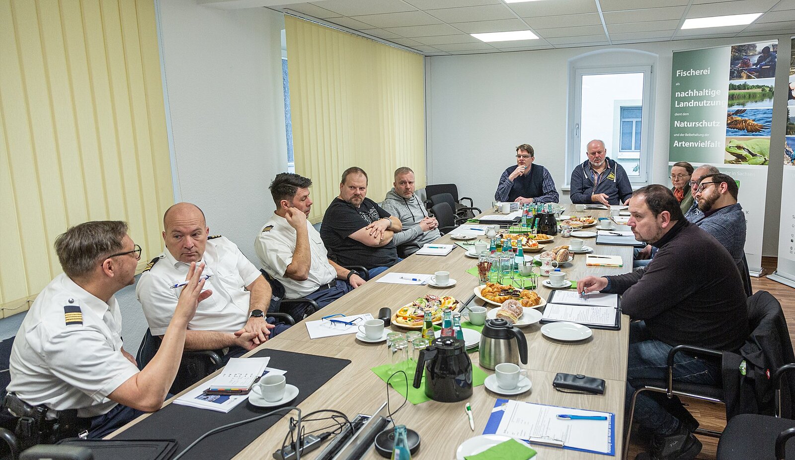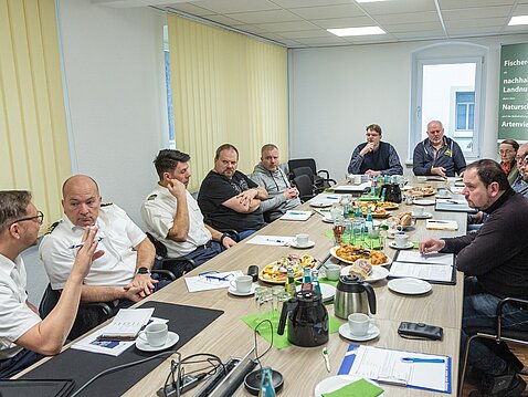 Um die Ordnung und die Sicherheit an unseren sächsischen Angelgewässern zu gewährleisten, ist eine gute Zusammenarbeit zwischen den Anglerverbänden, der Wasserschutzpolizei (WSP) und der staatlichen Fischereiaufsicht unerlässlich. Die vielen Aspekte der Zusammenarbeit wurden zu Beginn des Jahres in der Geschäftsstelle des Landesverbandes gemeinsam mit den Vertretern der WSP und des sächsischen Landesamtes für Umwelt, Landwirtschaft und Geologie (LfULG) diskutiert. Ein besonderes Augenmerk lag dabei auf die Einhaltung der fischereirechtlichen Belange. Doch auch zu anderen Themen wie die Gefahrenabwehr, Prävention und die Kriminalitätsbekämpfung sowie die Verfolgung spezieller Ordnungswidrigkeiten im Umfeld des schifffahrtspolizeilichen Vollzuges (z.B. Umwelt, und Abfallrecht) fand ein intensiver Austausch statt.